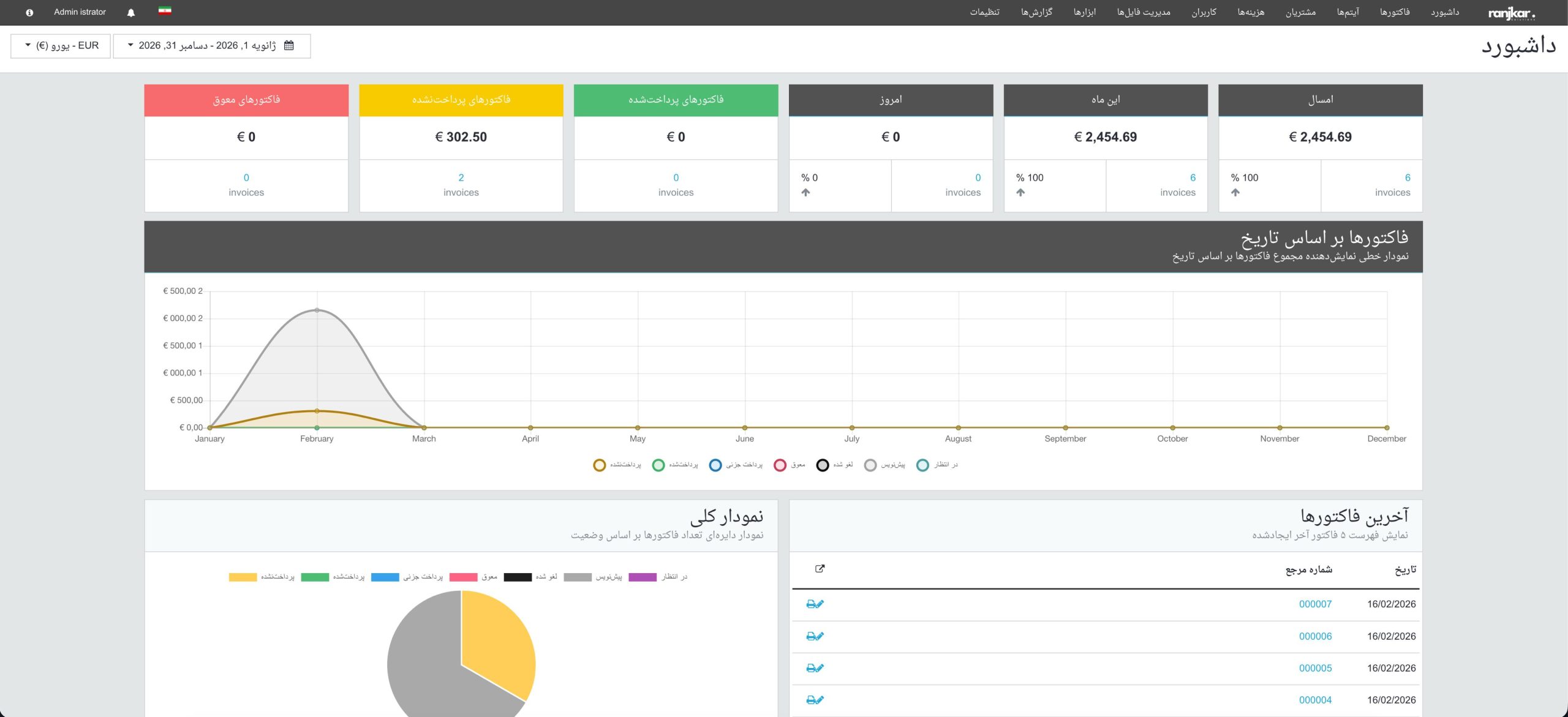 نسخه استارتر – فاکتور و پیش فاکتور یک برنامه تحت وب قدرتمند برای مدیریت فاکتورها و ارتباط با مشتری (CRM) است که بر اساس فریمورک PHP CodeIgniter توسعه یافته است و به شما امکان مدیریت کامل فاکتورها، پرداختها، مشتریان و گزارشهای مالی را میدهد.